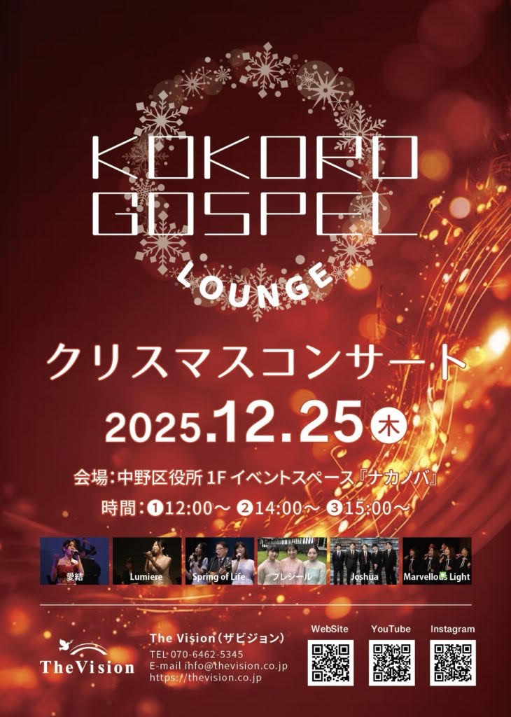 12月25日(木)中野区役所1階にあるスペース「ナカノバ」にて、 「KOKORO GOSPEL LOUNGE」 クリスマスコンサートが開催されました。 次回は2月12日(木)の予定です♪ 是非お越し下さい!